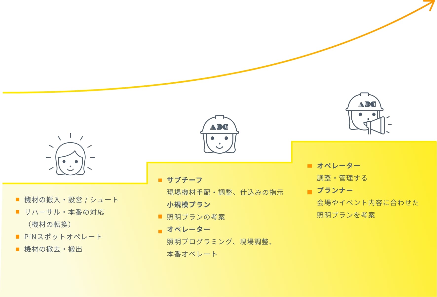大規模イベントからファッションショー、イルミネーションまで、あらゆる空間を光で彩り、確かな操作技術と多様な演出で感動を創造する照明のプロフェッショナルです。企画から本番、撤収まで一貫したサポートに加え、次世代のスペシャリストを育てる教育にも力を入れており、若手が早期に最前線で活躍できる環境を提供しています。